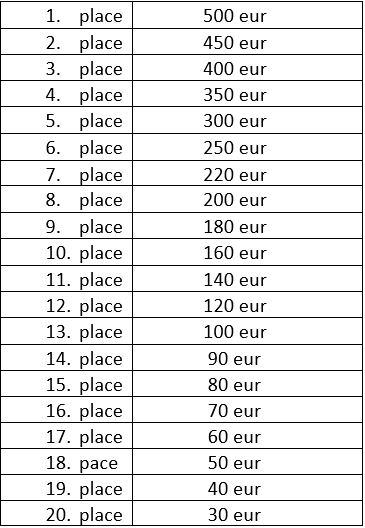 The prize pool is shared between the first 20 players who have achieved the highest number of points and prizes will be awarded as follows: