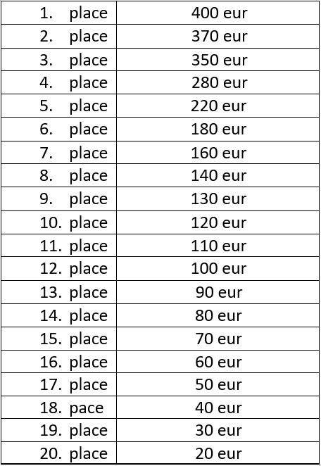 The prize pool is shared between the first 20 players who have achieved the highest number of points and prizes will be awarded as follows: