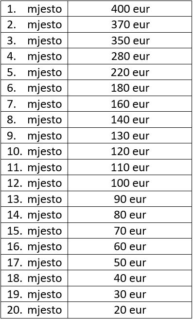 Fond nagrada dijeli prvih 20 takmičara koji su ostvarili najveći broj poena i nagrade se dodjeljuju na sledeći način: